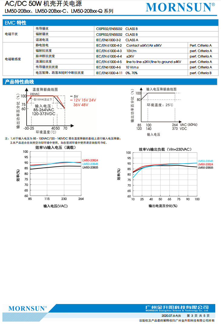 LM50-20Bxx 系列----是金升阳为客户提供的金属机壳式电源。该系列电源具有全球通用输入电压范围、交直流两用、高性价比、低功耗、高效率、高可靠性、安全隔离等优点。产品安全可靠,EMC 性能好,EMC 及安全规格满足国际 IEC/EN61000-4、CISPR32/EN55032、 IEC/UL/EN62368、IEC/EN60335、GB4943、IEC/EN61558 的标准。广泛应用于工控、LED、路灯控制、电力、安防、通讯、智能家居等领域。